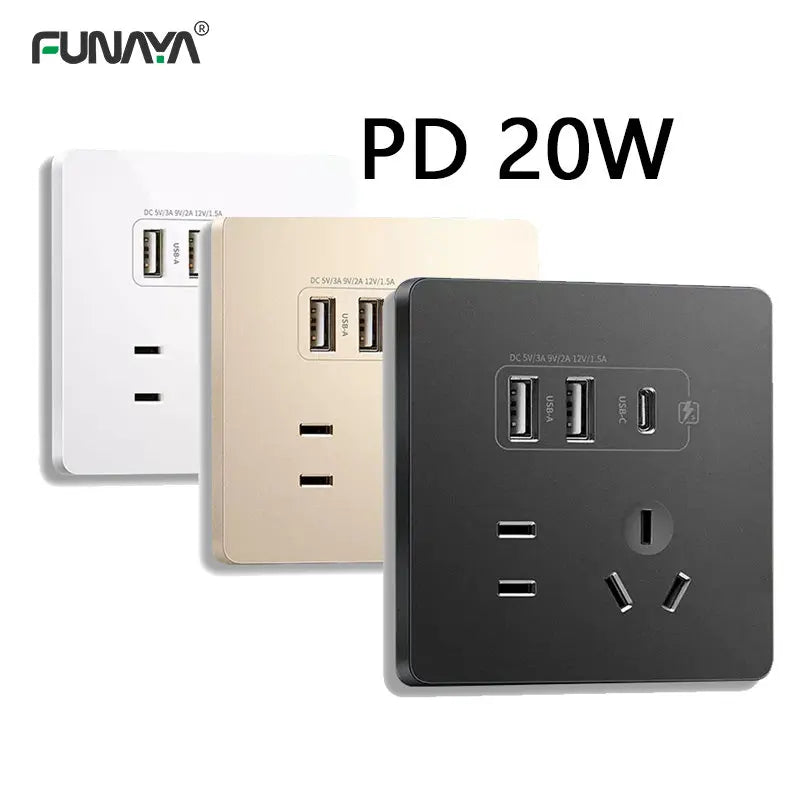 AU Wall Sockets 2 USB 5V 3A 1 1 Outlets Type-c PD 20W Quick Charge QC 86mm AC 110v 220v 2500W 10A Black White Grey Home Socket