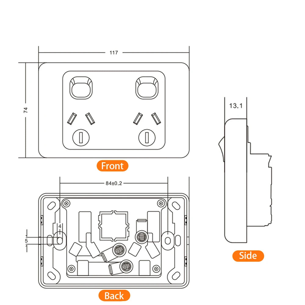 Black Australian Standard USB C Wall Dual Socket with 1/2/3Gang Switch,AU Plug Adapter Mobile Phone Charging Power 10A Outlet