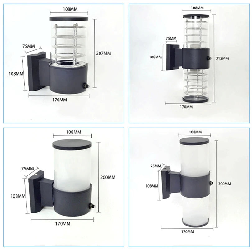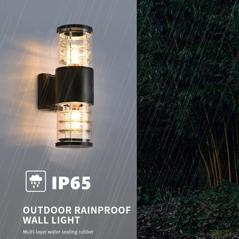 E27 LED Outdoor Wall Lamp Sensor Up Down Glass Aluminium Waterproof Garden Light Corridor Street Exterior Wall Sconce 110V 220V