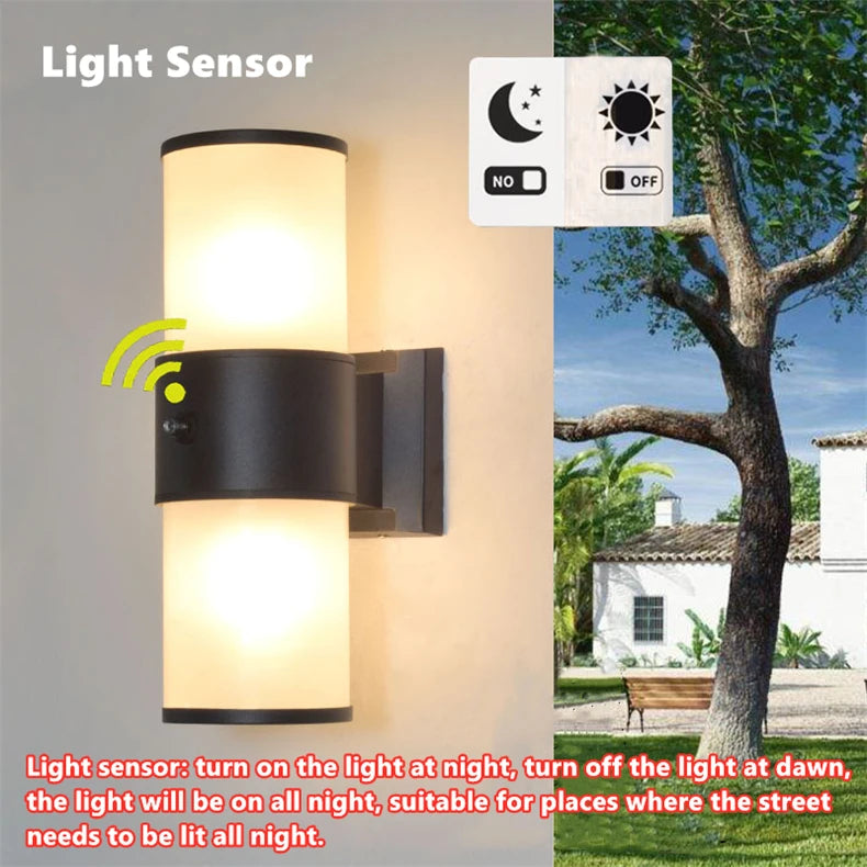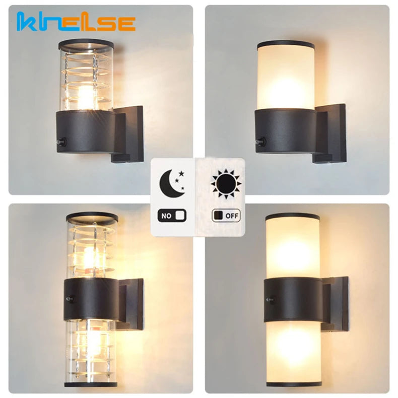 E27 LED Outdoor Wall Lamp Sensor Up Down Glass Aluminum Waterproof Garden Light Corridor Street Exterior Wall Sconce 110V 220V
