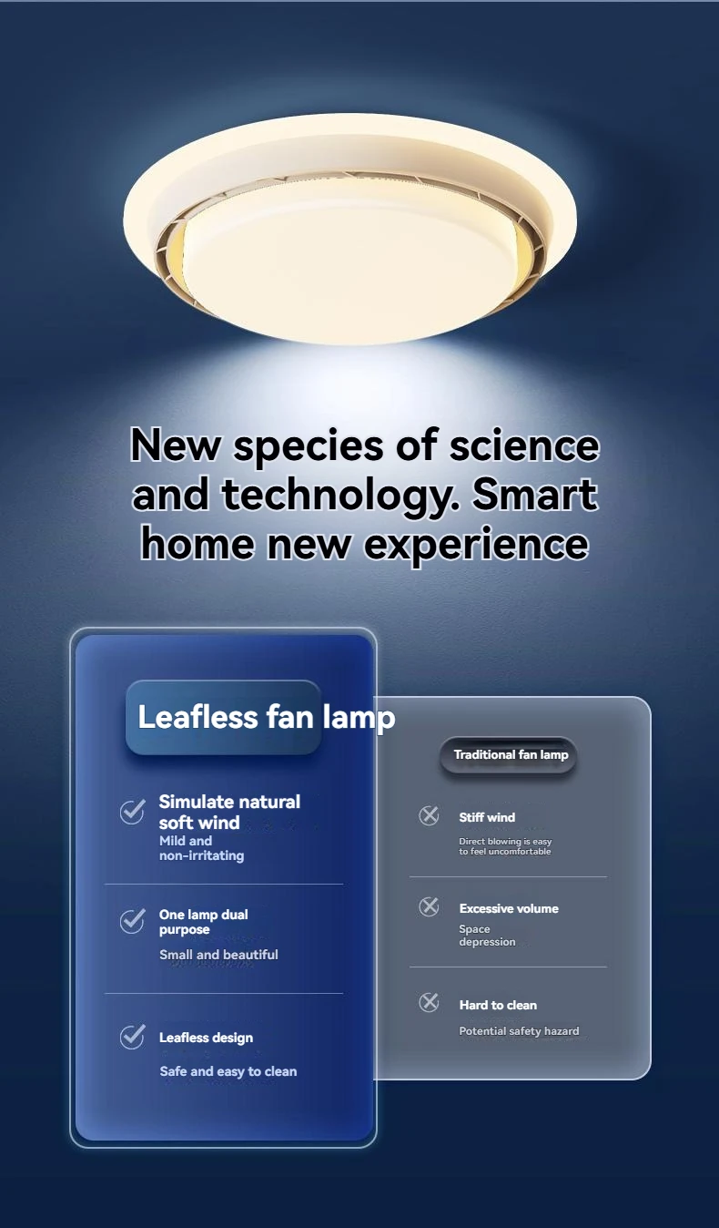 Full spectrum bladeless fan light new model, invisible and silent ceiling fan light for bedroom and master room