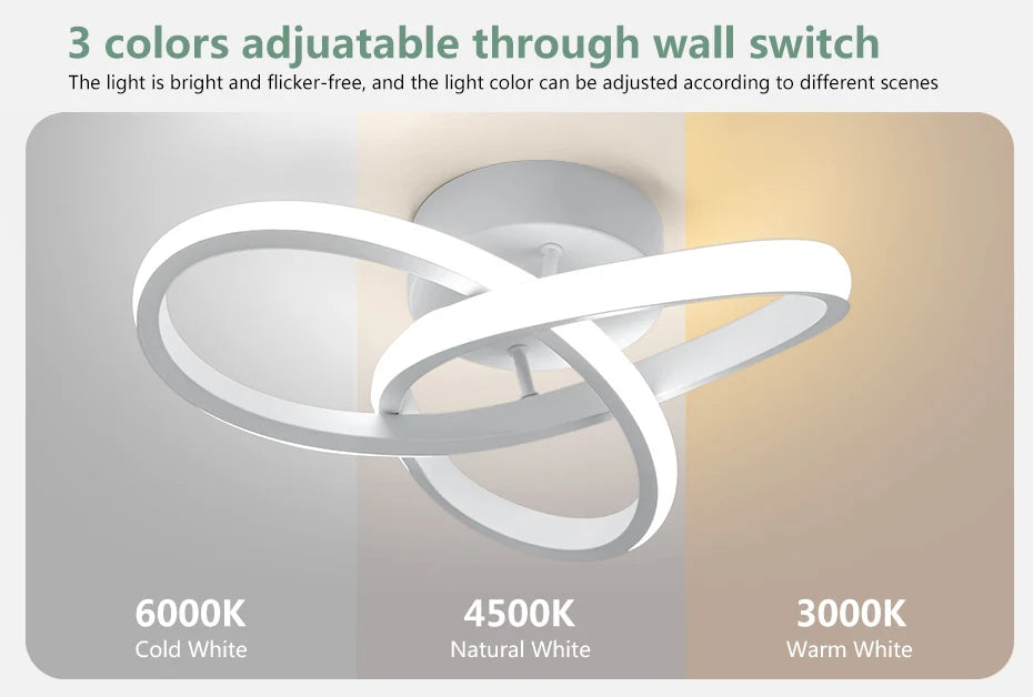 Household LED Chandelier Three Colors Lamp Modern Style Ceiling Lamp Bedroom Light Surface Installation 220v Dining Room Lamp