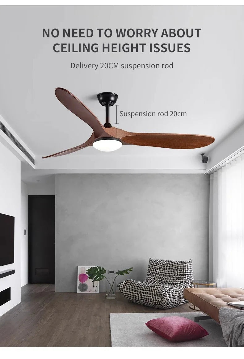 Low Floor Modern Ceiling Fan Without Light 42/52 Inch DC Motor Reversible Blade Remote Control LED Fan with Light Pendant Lamp