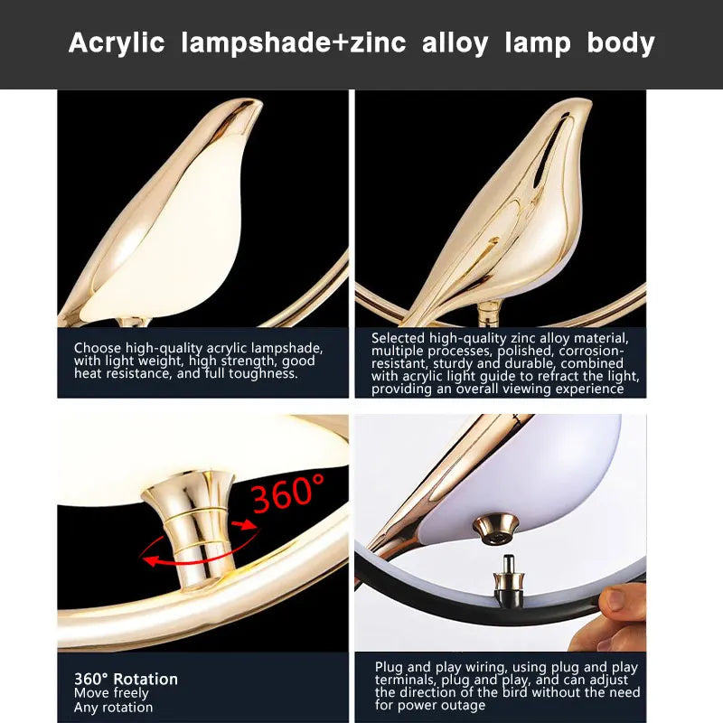 Magpie Bird LED Cord Pendant Lamps AC85-265V Indoor LED Chandelier Lights for Bedside Bedroom Indoor Black Silver Hanging Lights