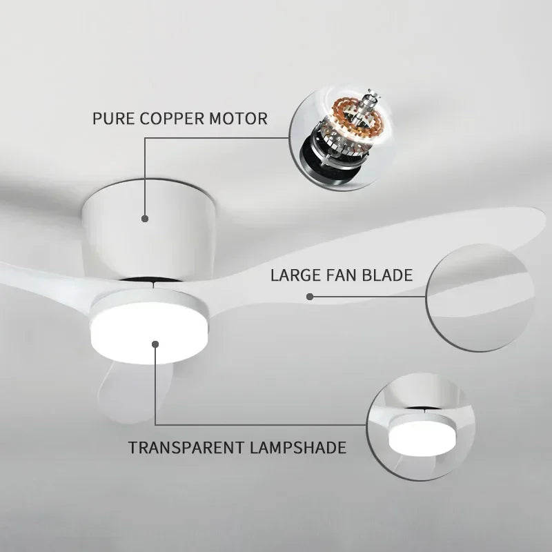 Modern Ceiling Fan, LED Light, DC Motor, High Air Volume Remote Control, Kitchen, Bedroom, Dining Room, Terrace, Pendant Light
