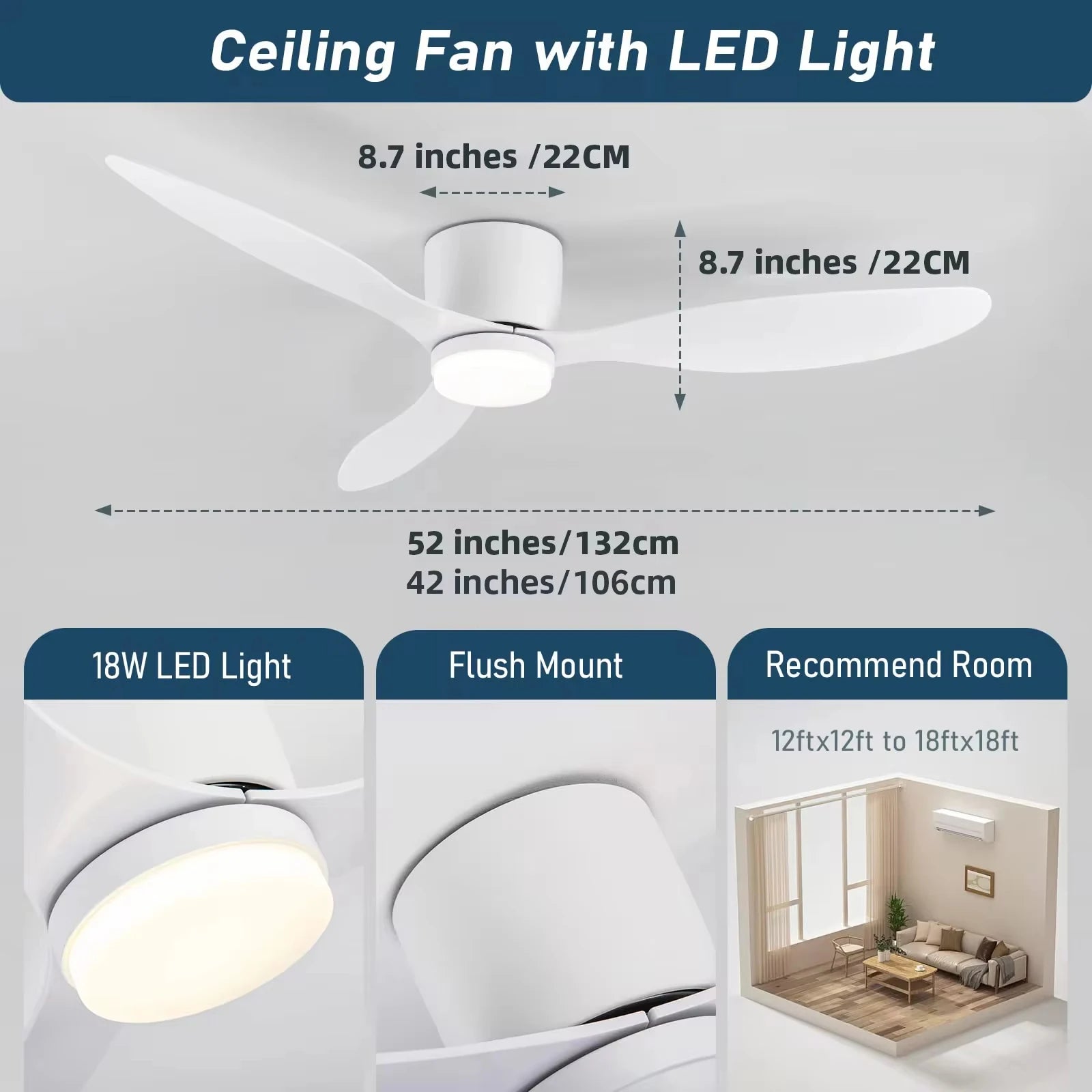 Modern Ceiling Fan with LED Light, DC Motor, Large Air Volume, Remote Control for Kitchen, Bedroom, Dining Room, Patio