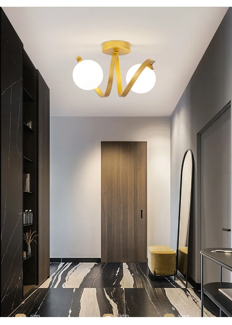 Modern Glass Ceiling Lights Minimalist Black Gold Ceiling lamp Indoor Lighting Hallway Aisle Balcony Entryway Cloakroom Fixtures