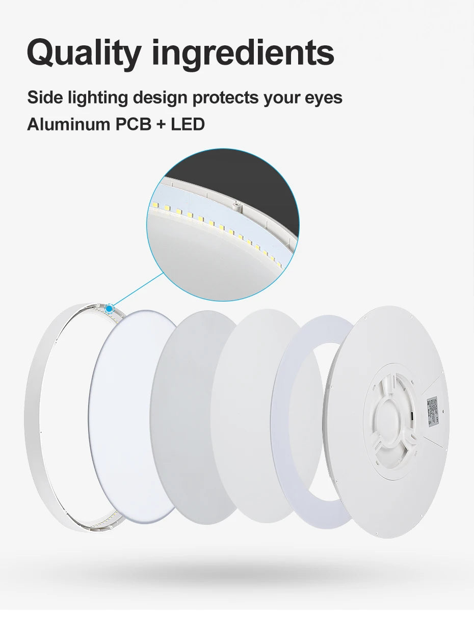 1.Ultrathin slim design: The total thickness of the lamp body is only 0.95inch/2.4cm, It's really thin, so we define it as the air series ceiling light, You will be surprised when you take it in your hand.