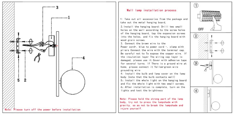 Light source: G9 bulb for 12cm diameter glass ball, E27 bulb for 15cm diameter glass ball