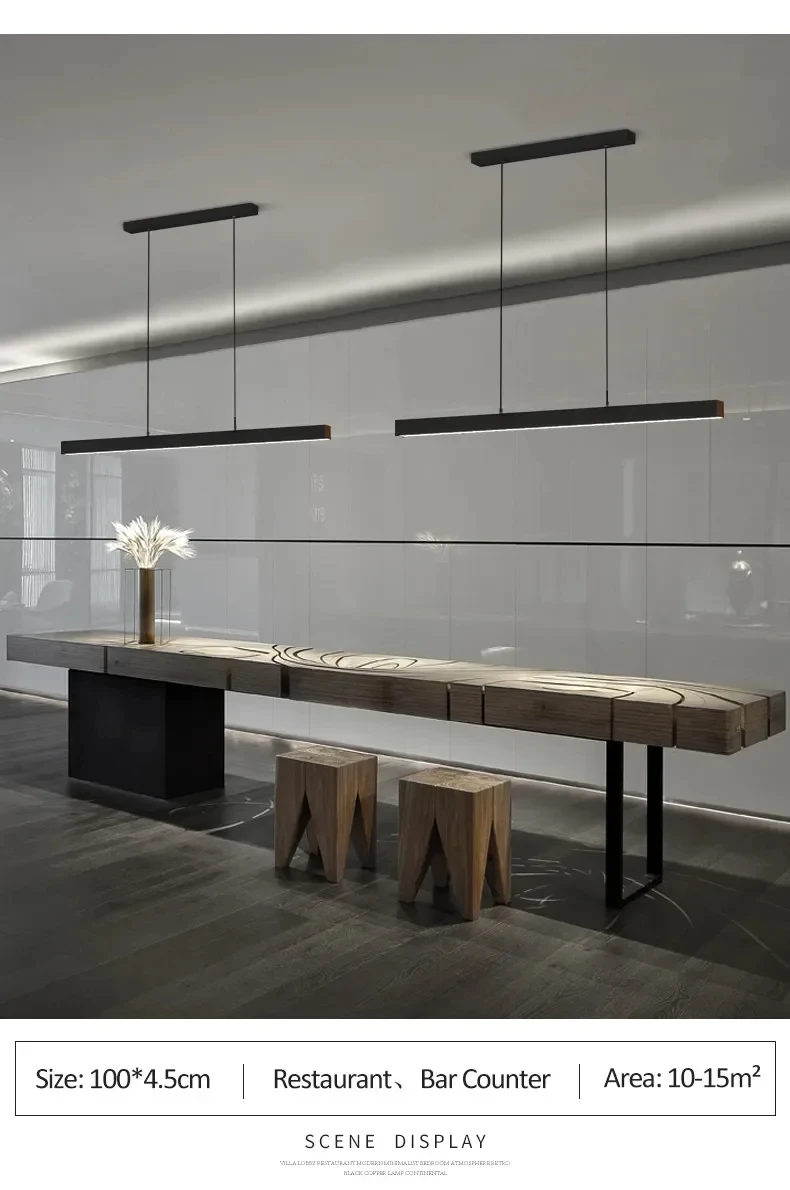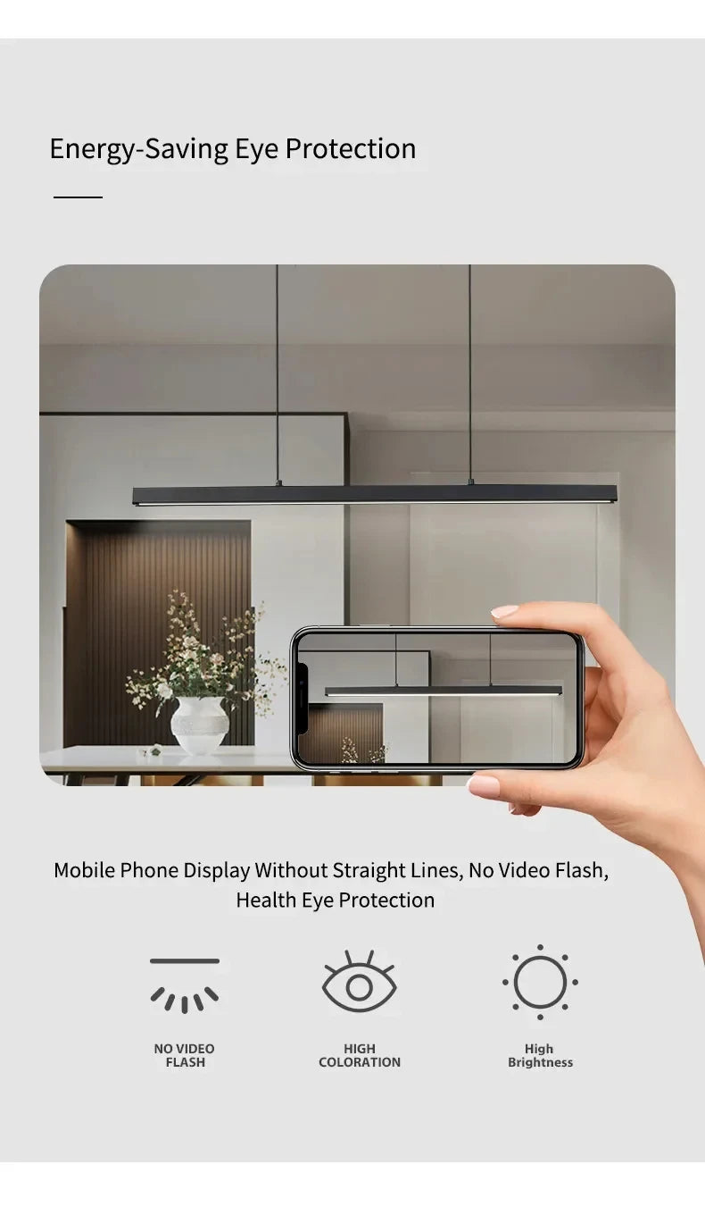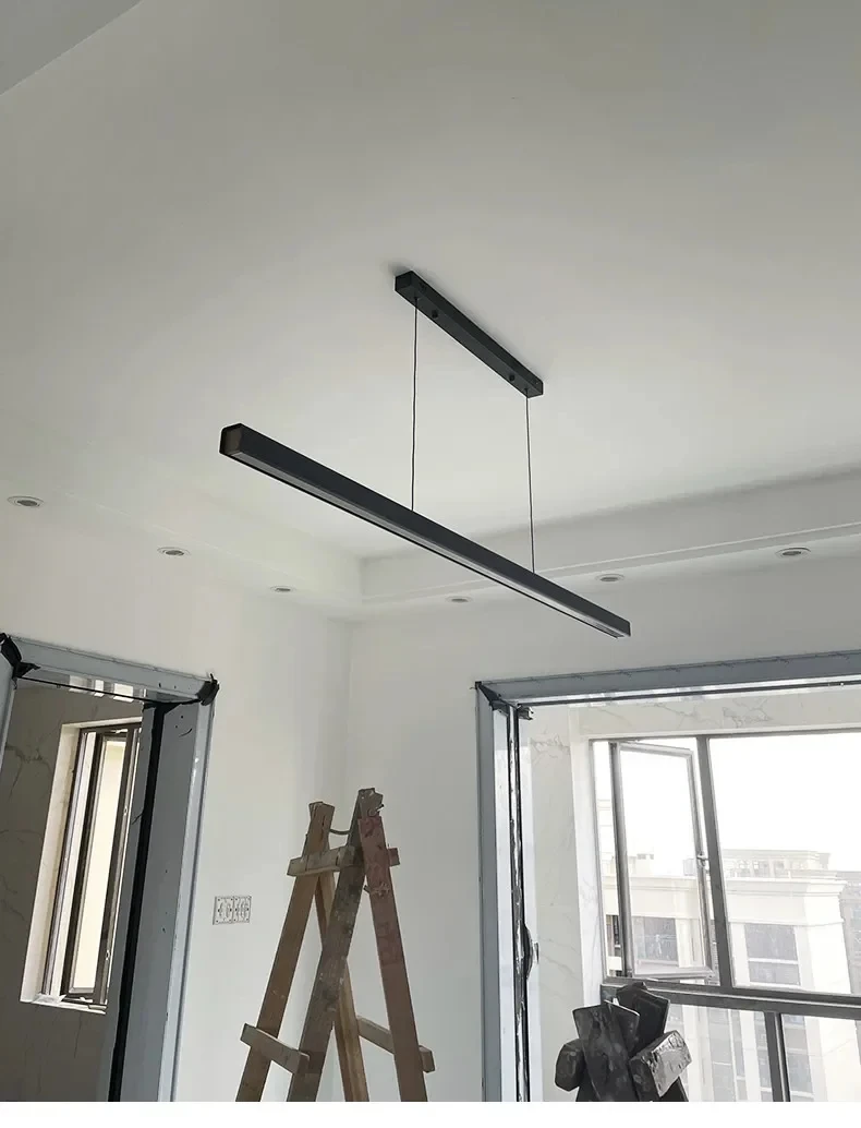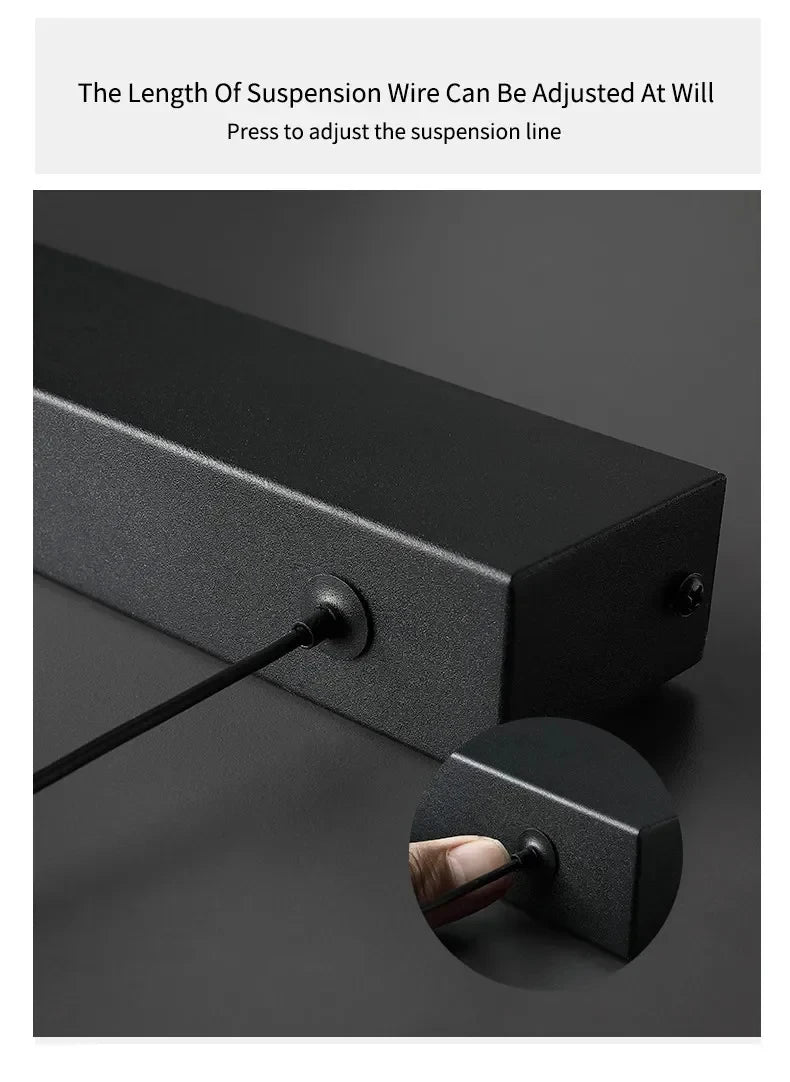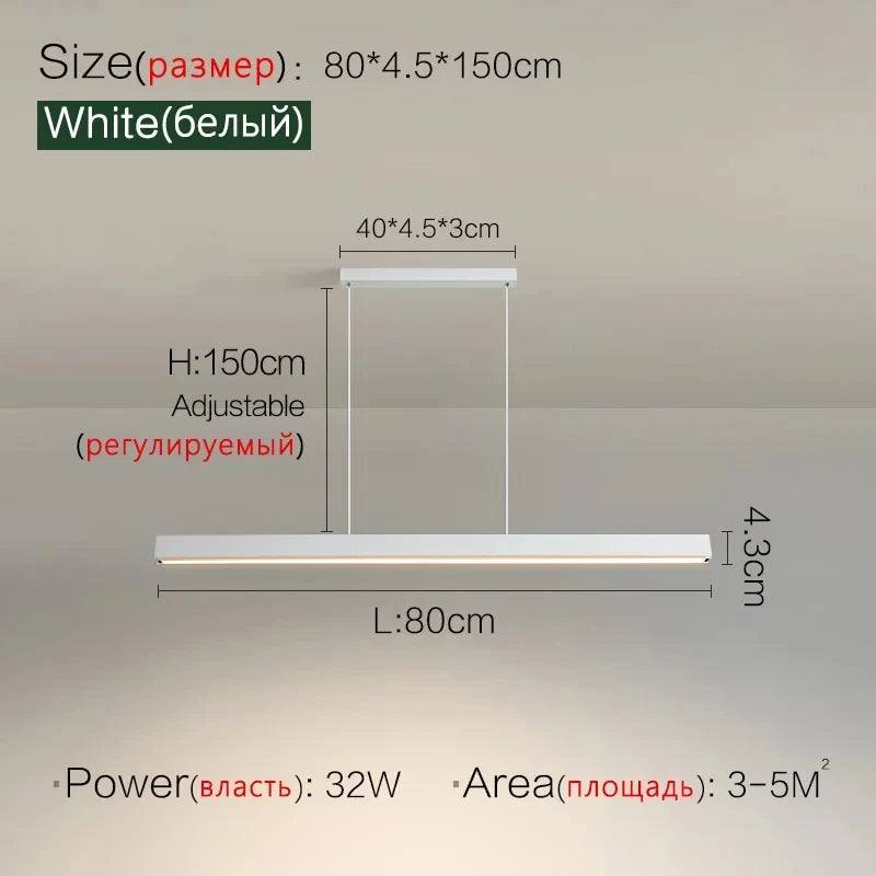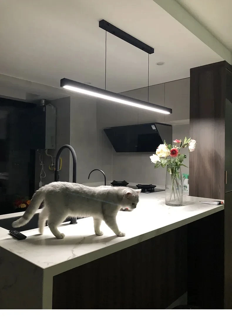 Nordic Minimalist Dining Table Pendant Lamp Modern Kitchen Bar Chandelier Black White Office Long Strip Hanging Light Fixture