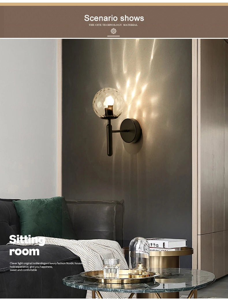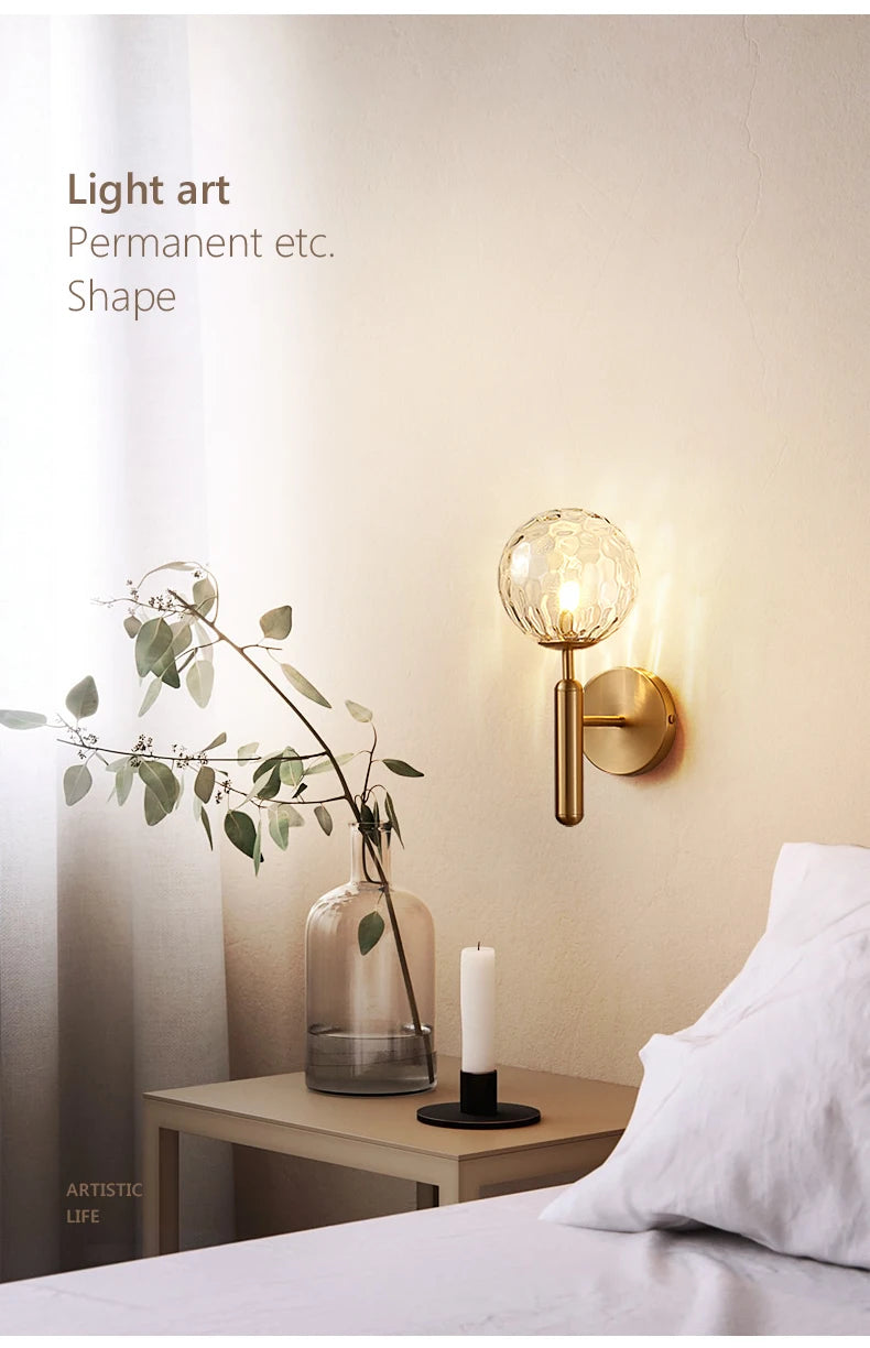 Nordic Modern Wall Lamp Bedroom Beside Glass Ball LED Wall Lights Wandlamp Bathroom Mirror Stair Lights Aisle Lighting Fixtures