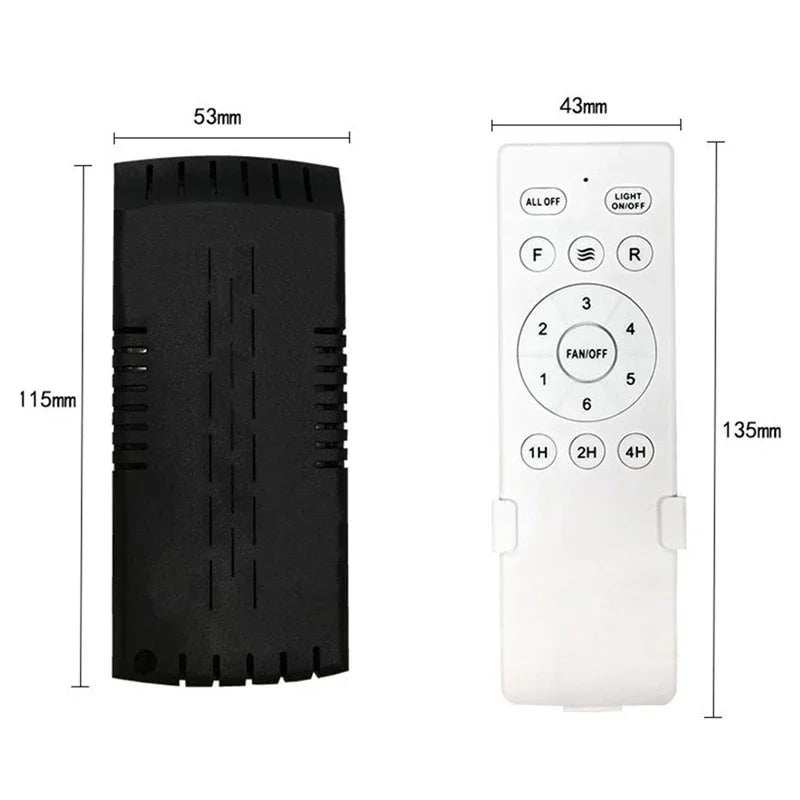 [Multifunctional Ceiling Fan Remote Control]This fan remote control kit can convert a normal ceiling fan into a remote control. 6-speed (high/medium/low) and off; 3 independent timing remote settings and control buttons: 1H, 2H, 4H; adjustable forward and reverse. 1 button for light on/off control.(no dimming).