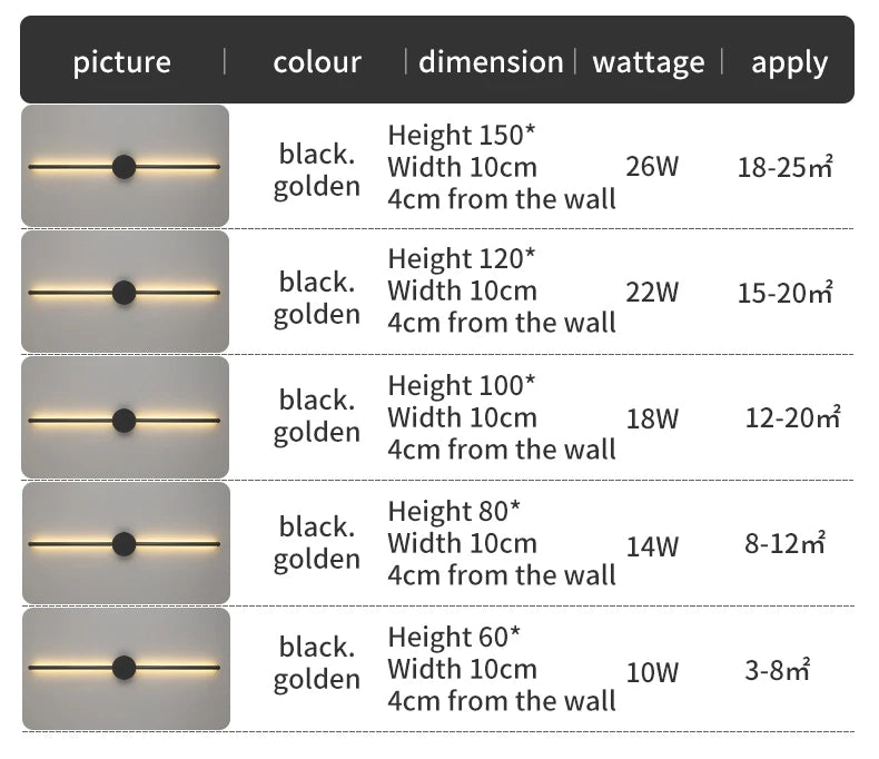 Wall Light Modern Long LED Light Black I-Shaped Wall Lamp Bedroom Living Room Corridor Interior Lighting Home Decor Lighting