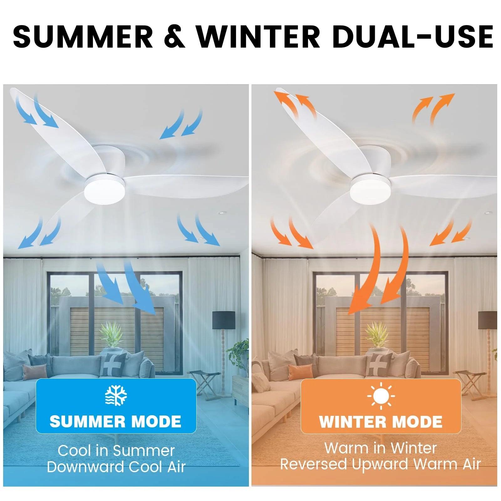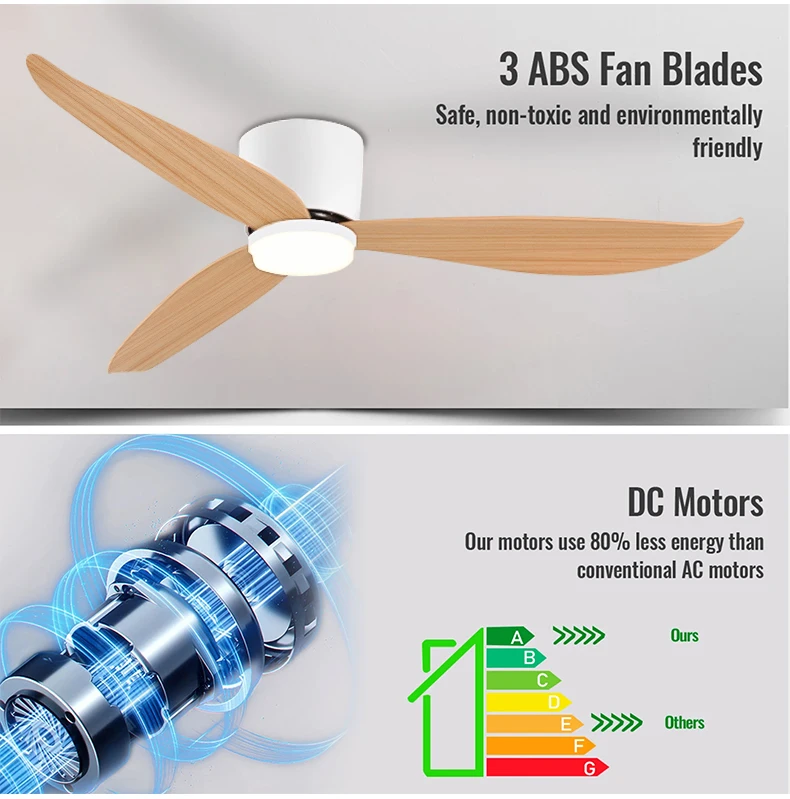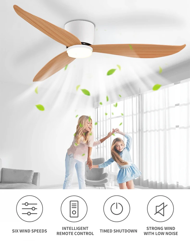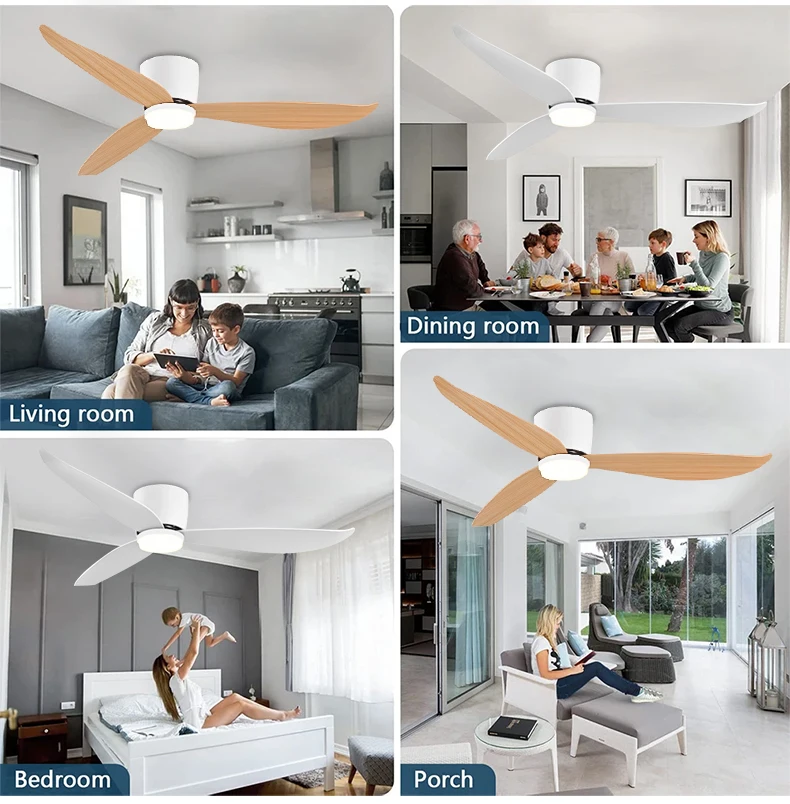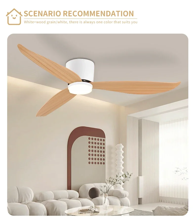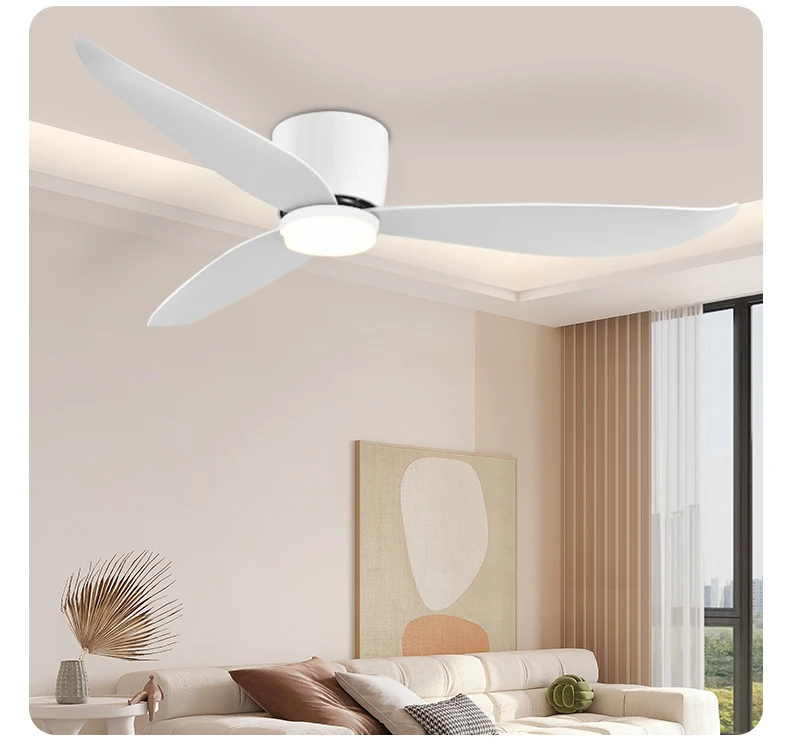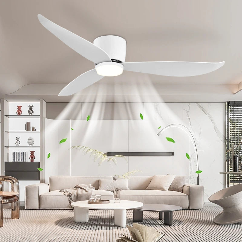 White 52 Inch Ceiling Fan with Light and Remote Control, Low Profile Embedded Ceiling Fan, Dimmable Bedroom, Living Room, Indoor